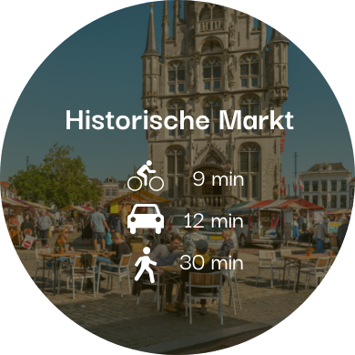De Heuvellaan ligt ook strategisch ten opzichte van alle grote steden rondom Gouda. Een paar autominuten: meer is het niet om de stad achter je te laten. De A12 en de A20 brengen je overal waar je zijn wilt. Al heeft Gouda ook een eigen NS-station, als je de voorkeur geeft aan reizen met de trein.