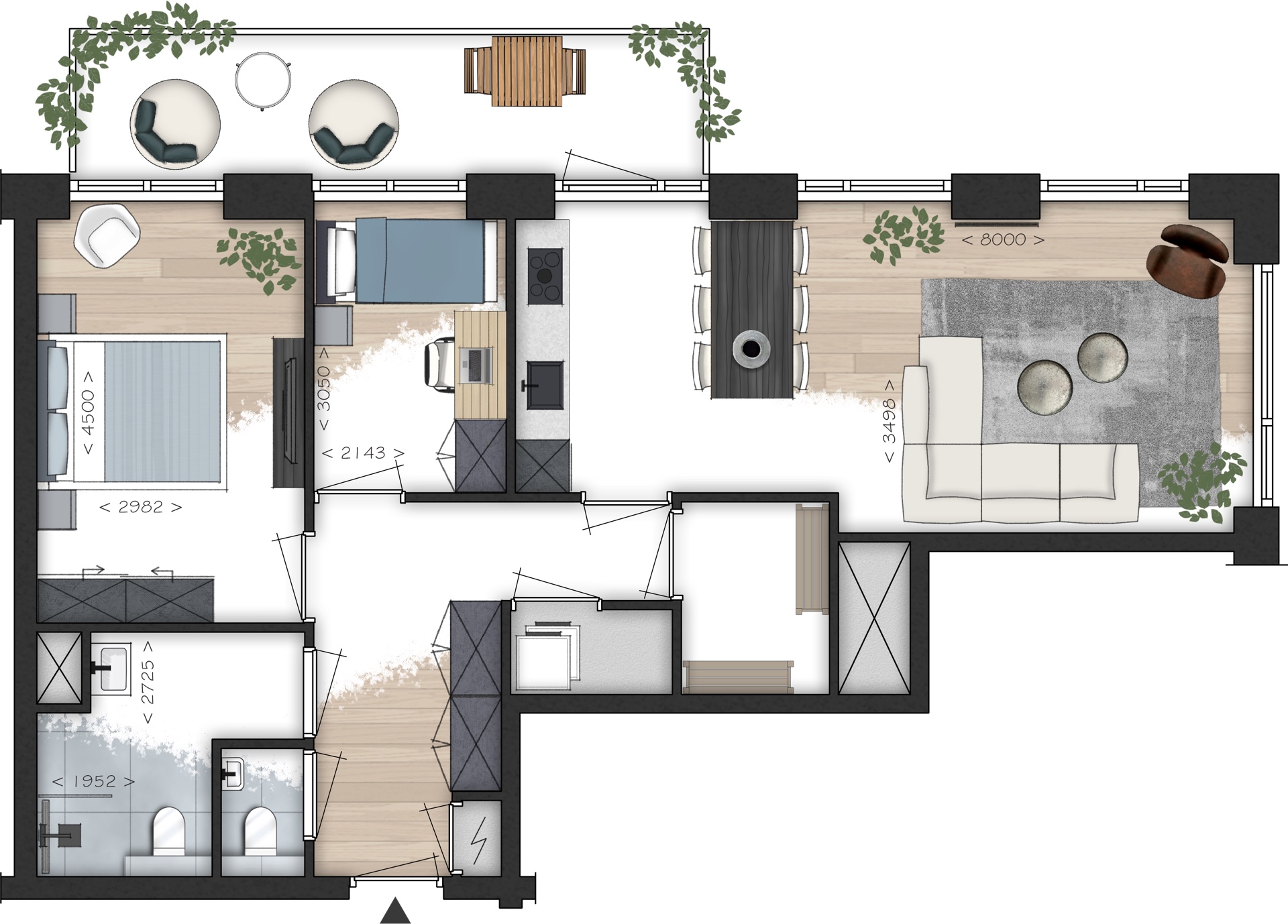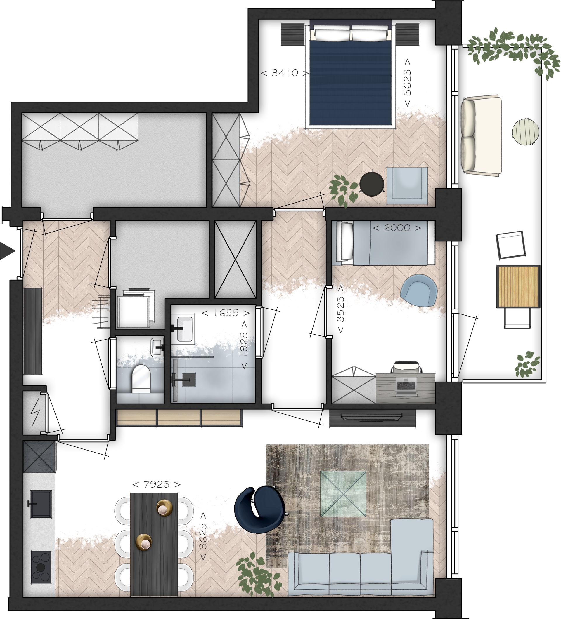 Liever wat meer ruimte? De driekamerappartementen in The Hill bieden een fijne indeling met een woonoppervlakte van circa 73 tot 77 m². Hier heb je een volwaardige extra kamer: ideaal als tweede slaapkamer, werkkamer of hobbyruimte.